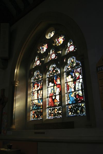 The subjects shown in the south aisle windows are all taken from the the New Testament and are the work of James Powell & Sons of Whitefriars, whose senior partner, Arthur Powell, lived in Dorking from 1858 until his death in 1894, and was responsible for much of the decoration of the rebuilt church. The windows date from between 1875 and 1888 and consist of three lights and a tracery. The windows listed below are numbered from the east end (starting from nearest the Lady Chapel):
