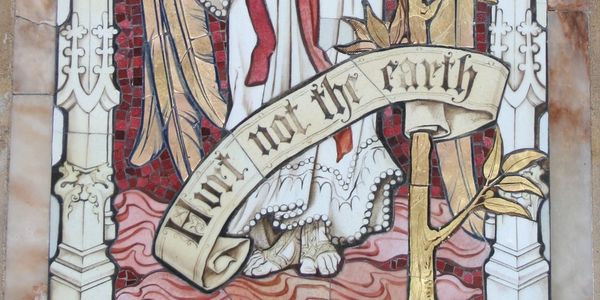 This monument was erected in 1909 and made in opus sectile by Powell. It is dedicated to a much loved parishioner who lived at Deepdene House, then the great house of Dorking. Lily, Duchess of Marlborough moved to Dorking in 1894 with her third husband, Lord William Beresford and made it her home until her death in 1909. The Duchess was very generous to St Martin’s Church, helping renovate the interior and install electric lighting as well as improving the organ and supporting the choir.